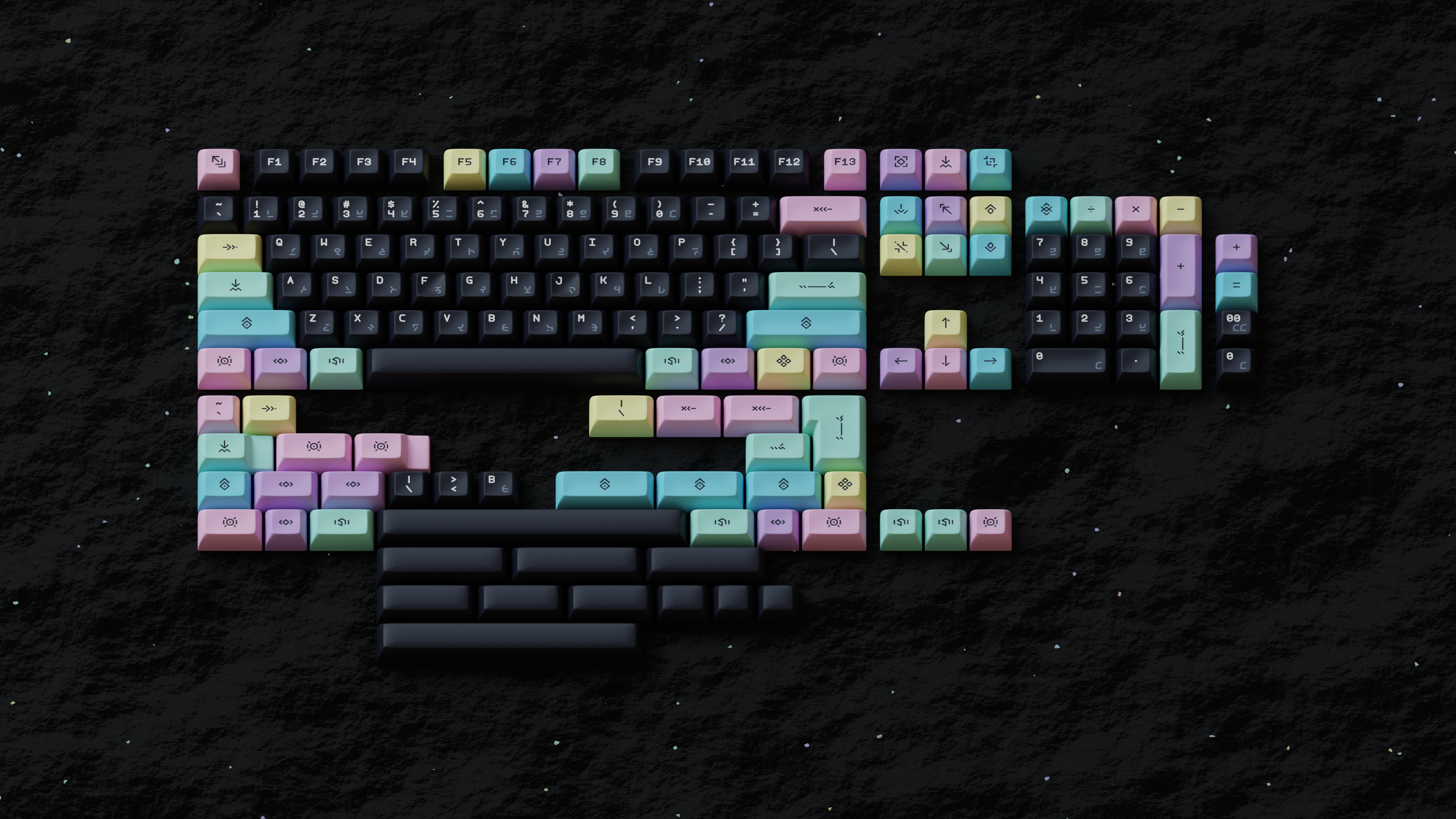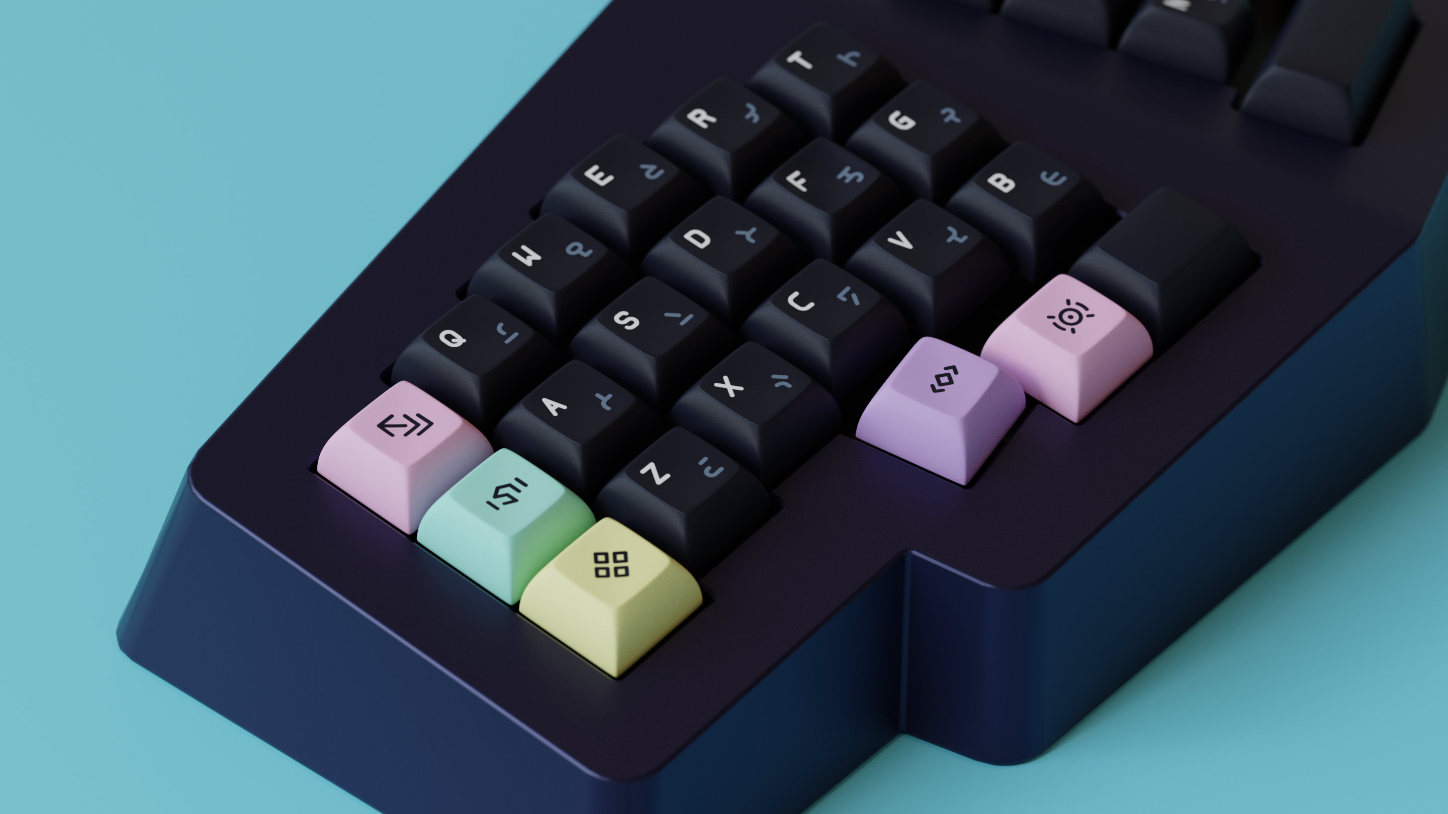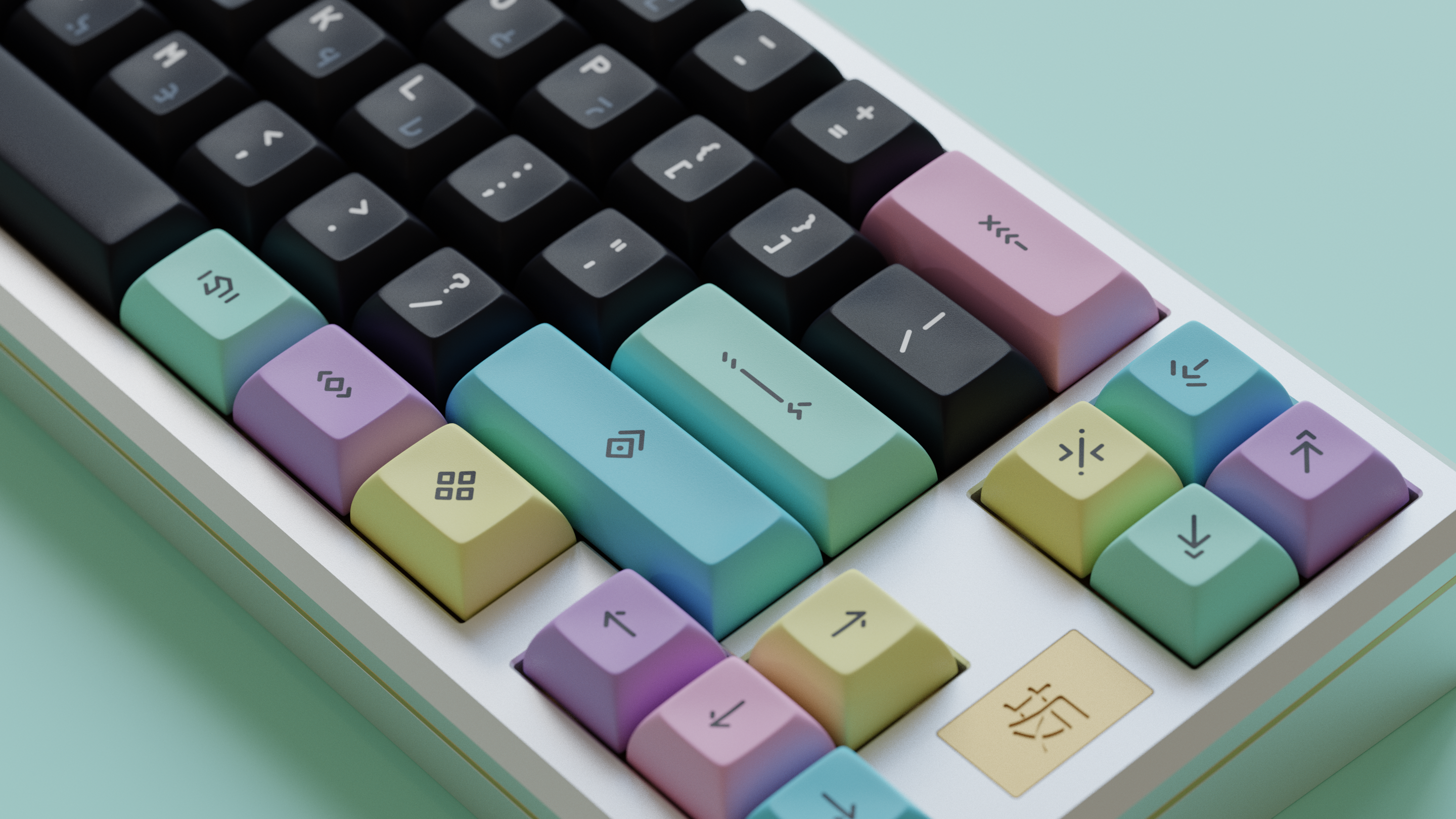 KAM Astha is a keycap set that I designed which draws inspiration from several passions I have: space and rich storytelling. Astha is a project which I have created in its entirety - everything, from the typeface, iconography, and renderings are done by me. It has been a multi-year project, and went through several iterations, all of which looked drastically different from one another. KAM Astha will be sold through a groupbuy in Q2 2024, with Cannonkeys.