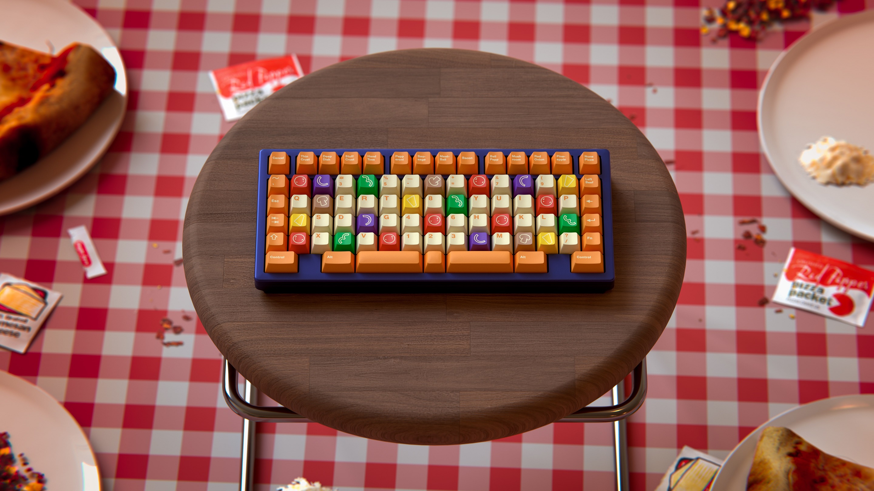 Pizza Rat is a keycap set designed after the nostalgia of pizza in the late 80's and 90's by Keebnewb. I created several 3D Visualizations for the set inspired by the iconic scenery and warm hues you would find in a classic New York pizza shop. As the main center piece, I created a scene which looks like it was taken straight out of a pizza place, complete with cheese and red pepper packets and greasy slices of pizza.